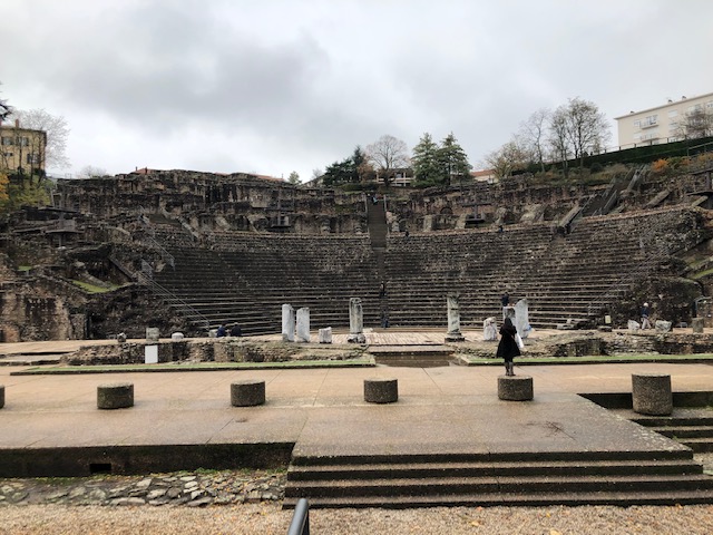 Now, Lyon isn’t just known for food. It’s got some impressive ancient Roman ruins there. But two things you should know before checking them out. First, they’re on top of the hill, and there isn’t much food around there, so eat before or afterward. Second, take the funiculaire, because otherwise, your phone records this: